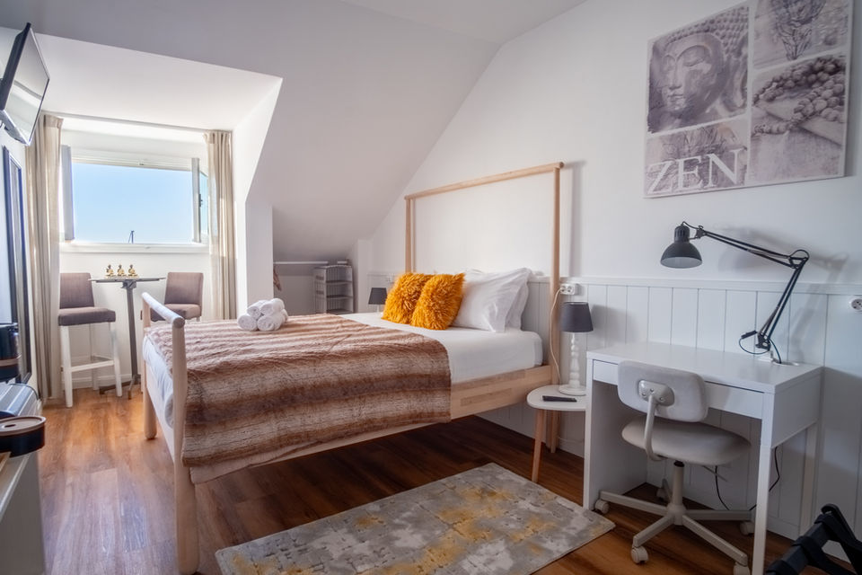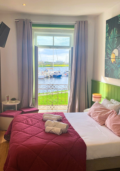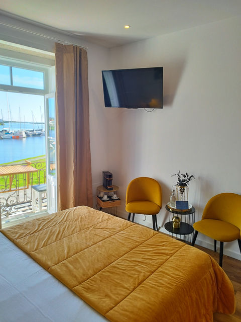 Com uma vista encantadora para o Rio Ave, este quarto é ideal para quem procura descanso e serenidade após um dia de viagem ou de descoberta pela região. Detalhes como almofadas aconchegantes, cama espaçosa e um cantinho especial para apreciar a paisagem tornam a experiência ainda mais memorável.