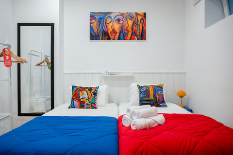 A suite tem 1 beliche com 2 camas e ainda uma terceira cama de solteiro individual.